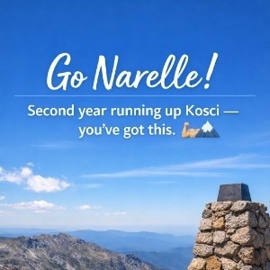 Narelle, what an incredible thing to do. Mt Kosciuszko is no small stroll, second time in a row. I’m cheering you on from the sidelines. Wishing you a strong, safe walk and good weather on the day.