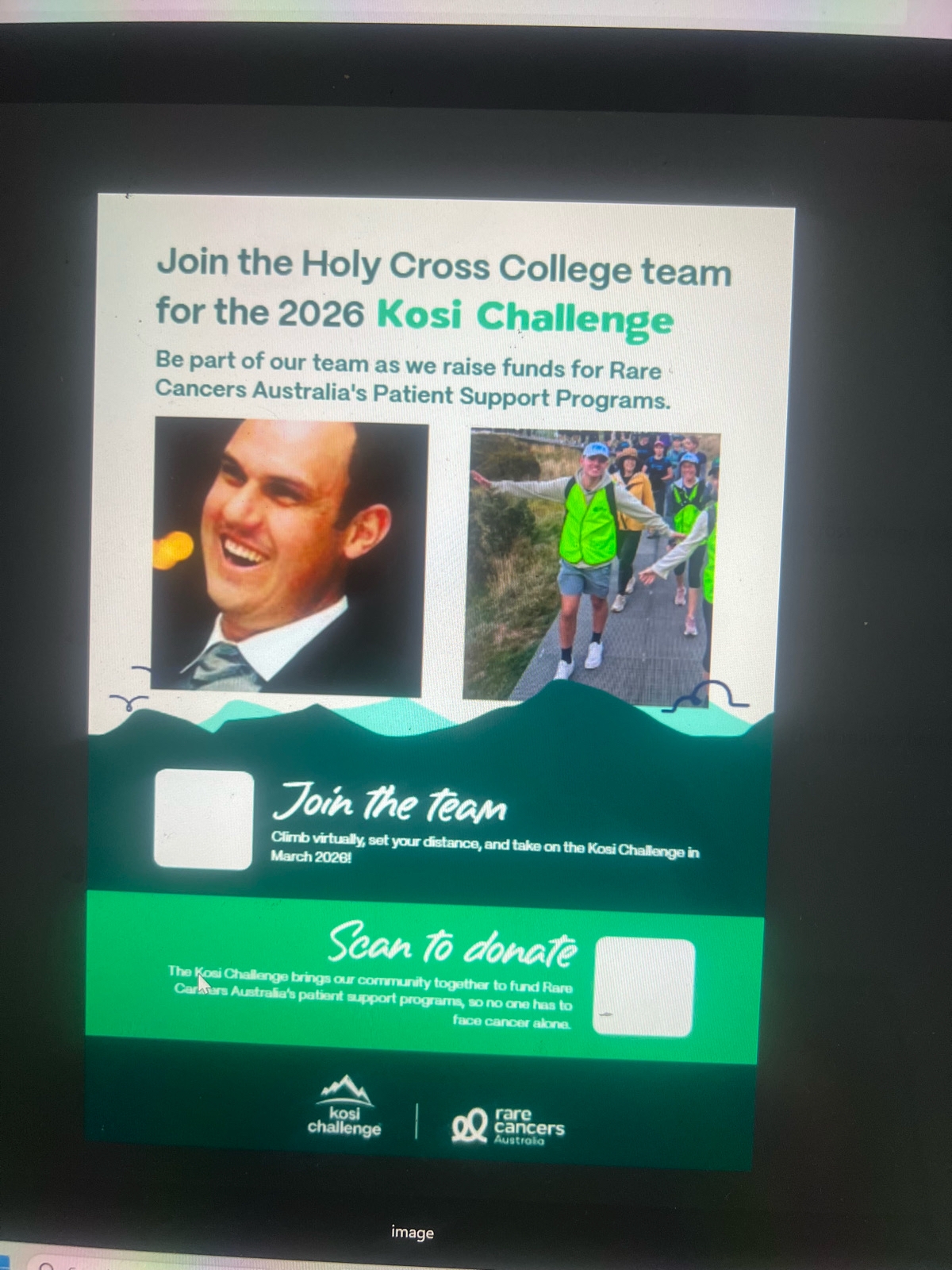 The Kosi Challenge is the single signature fundraiserfor Rare Cancers Australia (RCA), with the sole purpose of raising awareness and much needed funds for people across Australia impacted by rare and less common cancers.